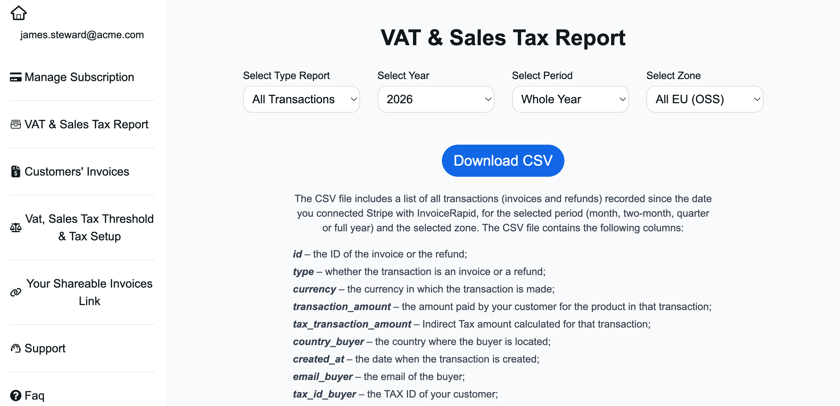 CSV Reports for EU VAT, UK VAT & US Sales Tax
